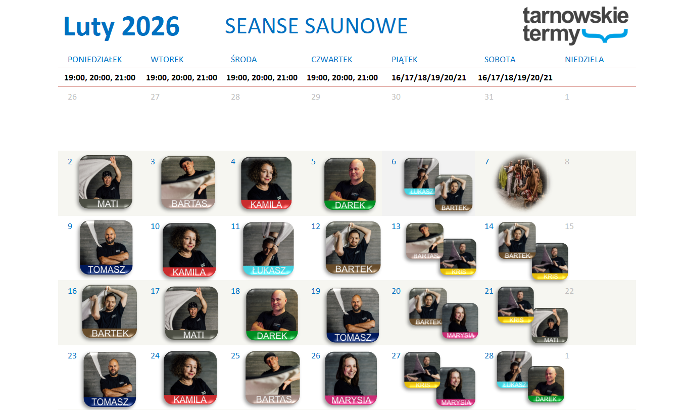 GRAFIK SEANSÓW SAUNOWYCH